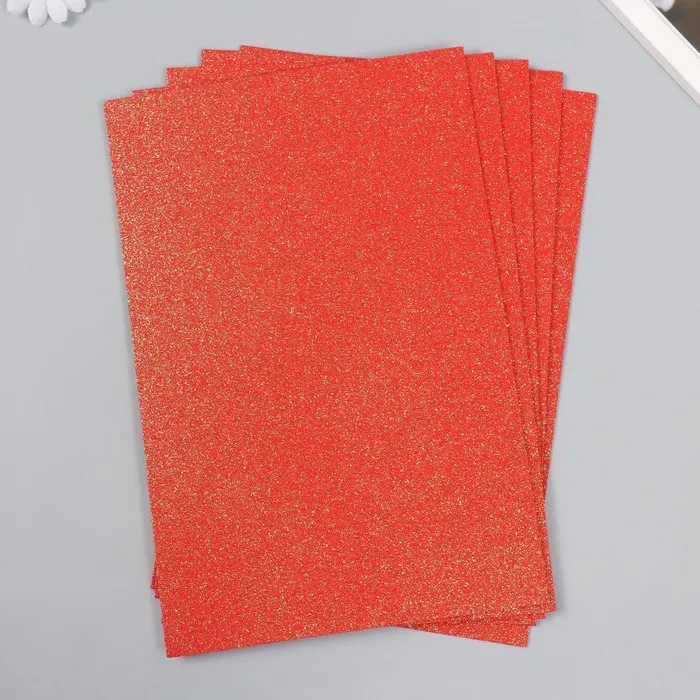 Фоамиран «Красный апельсин блеск», 2 мм, формат А4, набор 5 листов