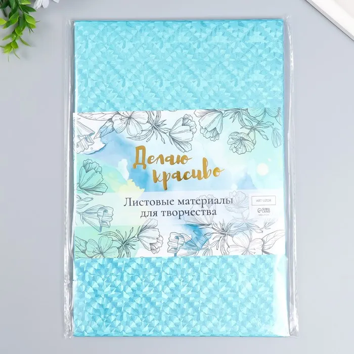 Фоамиран металлизированный «Вспышка голубая», 2 мм, формат А4, набор 5 листов