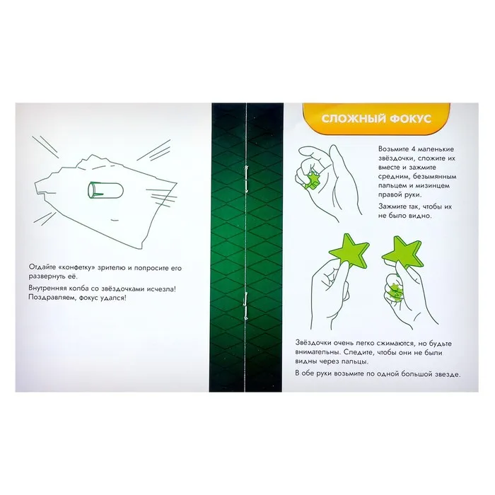 - Материалы безопасны, действия продуманы с учётом возрастных особенностей. Фокусы развивают ловкость, внимание и уверенность в себе.