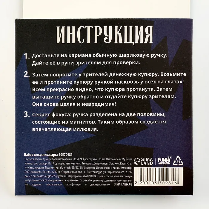 • В набор входит всё необходимое для эффектного номера. Трюк сопровождается подробной инструкцией, чтобы ребёнок быстро разобрался в механике.