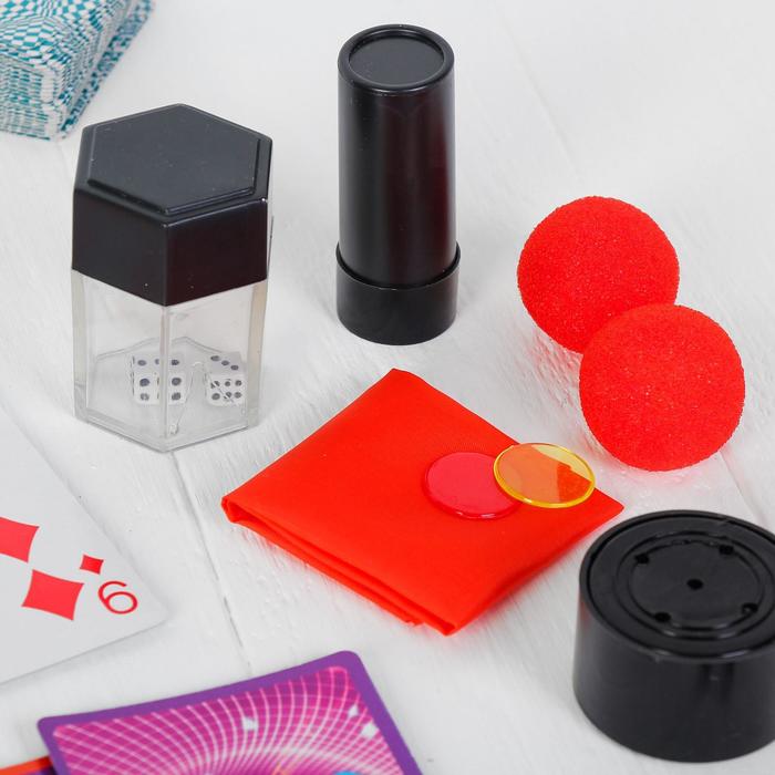 Удиви зрителей волшебными трюками! Большой набор фокусника — это готовый реквизит для начинающего иллюзиониста. С ним ребёнок освоит первые магические номера, разовьёт ловкость рук и уверенность перед публикой. Идеально подходит для домашних выступлений.