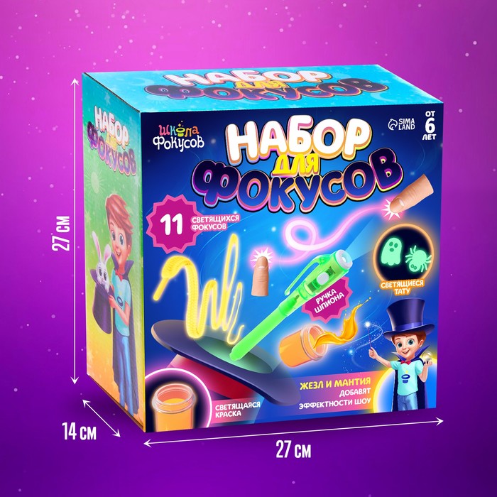 Этот набор станет занимательным и увлекательным подарком! В нём уже есть всё, чтобы почувствовать себя настоящим фокусником. Магом станет не только ребёнок, но и родители! Впереди вас ждут самые захватывающие шоу со светом. Повторяйте фокусы из инструкций и придумывайте свои.