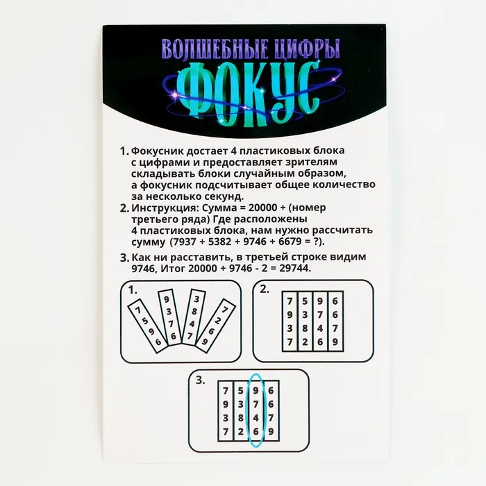 Фокусы «Профи» — первый шаг в мир сценического мастерства. Они раскрывают творческий потенциал, учат добиваться результата через практику. Отличный вариант для детей, которые любят удивлять и быть в центре внимания. Подарите малышу магию — пусть его глаза загорятся от восторга первых успехов!