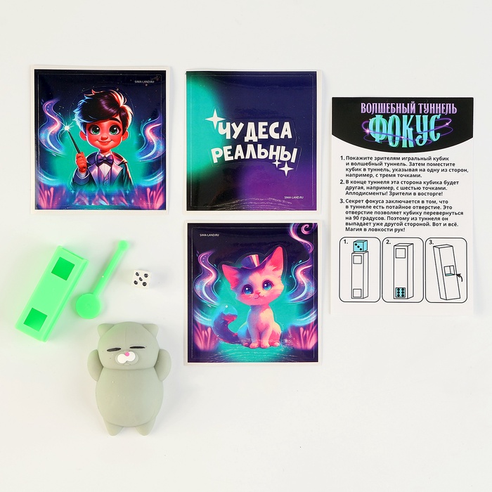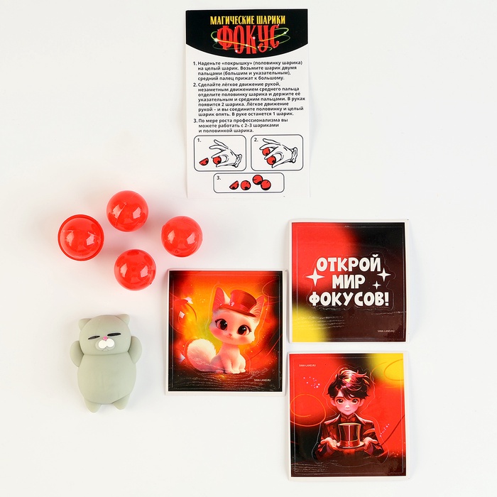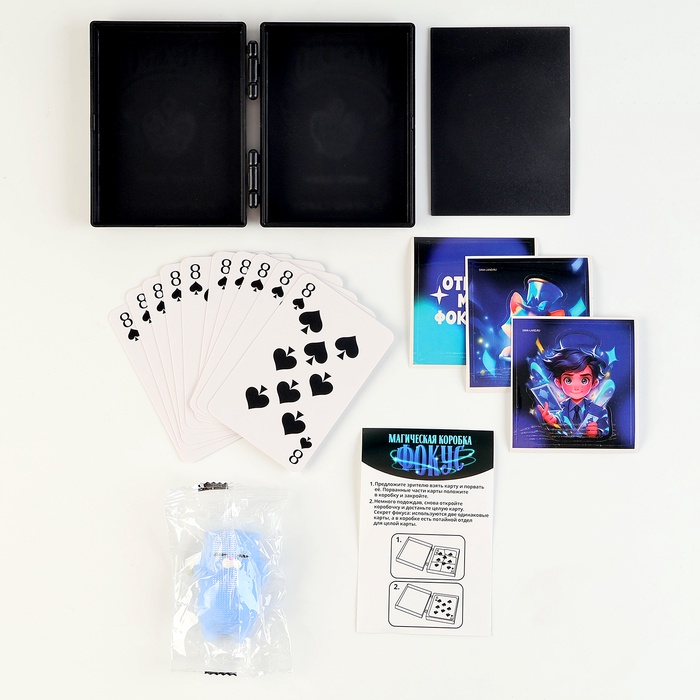 - В шоубоксе 6 наборов. В каждый набор входит всё необходимое для эффектного номера. Каждый трюк сопровождается подробной инструкцией, чтобы ребёнок быстро разобрался в механике.