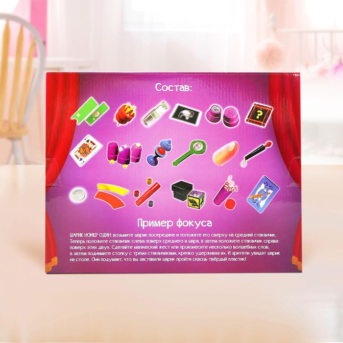 - 60 профессиональных фокусов. В набор входит всё необходимое для эффектных номеров. Каждый трюк сопровождается подробной инструкцией, чтобы ребёнок быстро разобрался в механике.