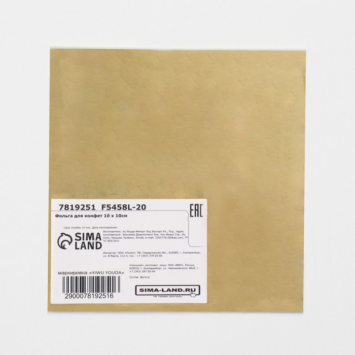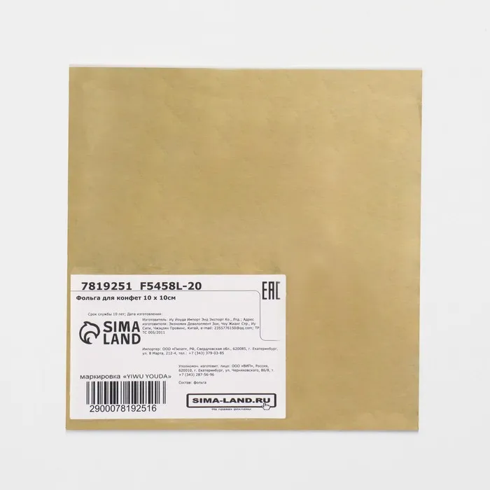 Фольга для конфет 10 х 10 см, 100 шт — Характеристики