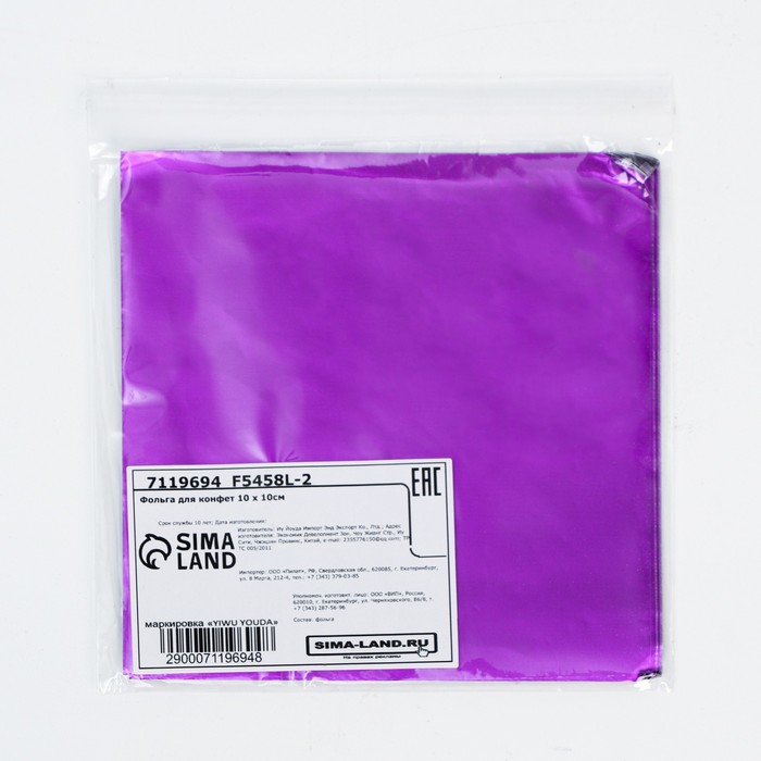 Фольга для конфет 10*10см 100шт., фиолетовый — Характеристики