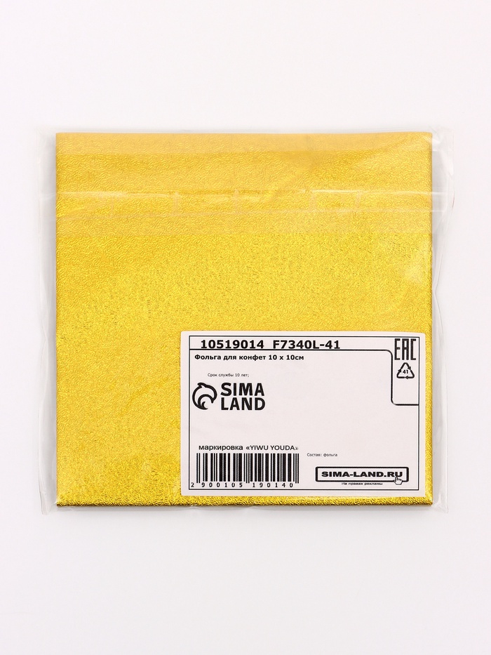 Фольга для конфет 10×10 см 100 шт., лимонное золото, фактура №1 — Характеристики