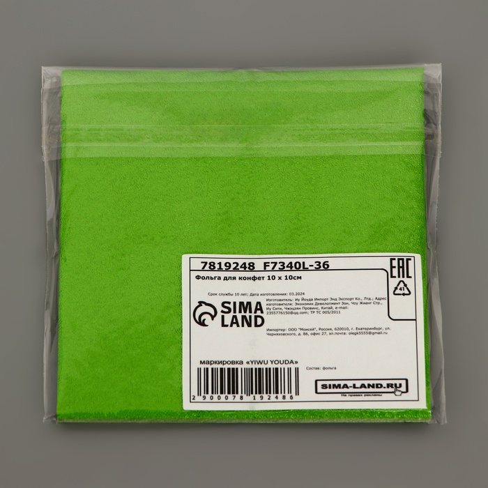 Фольга для конфет, зелёный 10 х 10 см, 100 шт — Характеристики