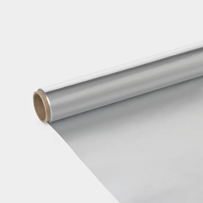 Фольгу можно использовать как с глянцевой стороны, так и с матовой. Глянцевая сторона удерживает тепло, а матовая — притягивает. Поэтому для запекания обычно рекомендуют класть фольгу матовым покрытием на противень.