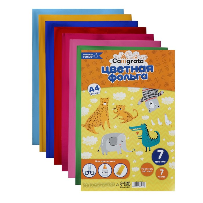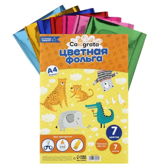 Фольга цветная А4, 7 листов, 7 цветов, 100 г/м2 — Характеристики