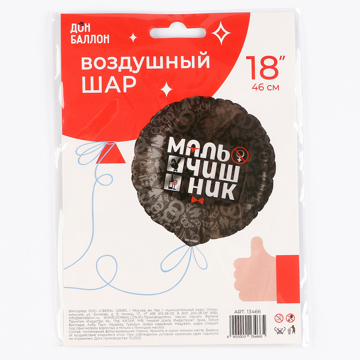 Фольгированный шар 18" «Мальчишник», круг — Характеристики