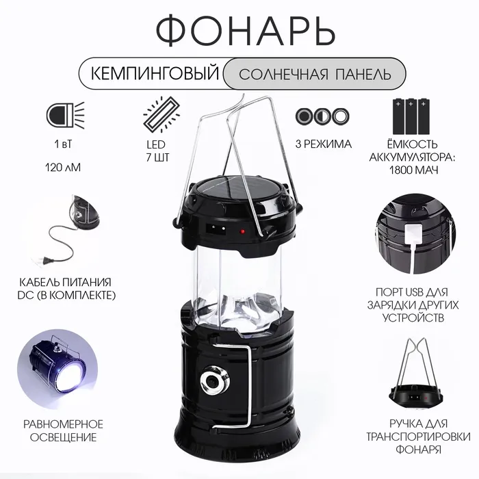Фонарь кемпинговый, 6 Вт, SMD 2835, кабель l-1.5 м, с зажимом от 12 В, 6 х 8.5 см — Характеристики