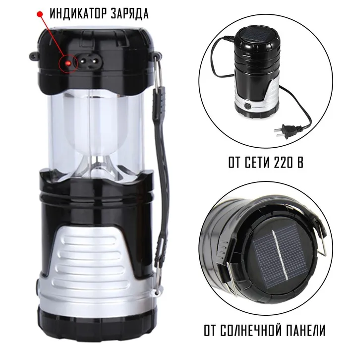 Фонарь кемпинговый аккумуляторный, 10 Вт, 10 LED, 500 мАч, солнечная батарея — Характеристики