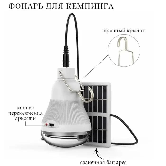Фонарь кемпинговый аккумуляторный, 20 Вт, 2400 мАч, 2835, 3 режима, индикатор заряда — Характеристики