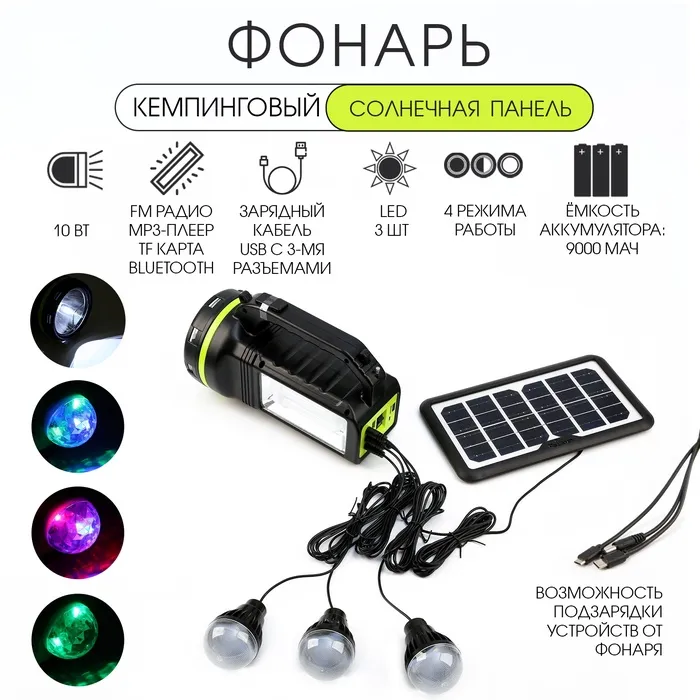 Фонарь кемпинговый аккумуляторный 5 Вт, 1200 мАч, USB, салатовый — Характеристики