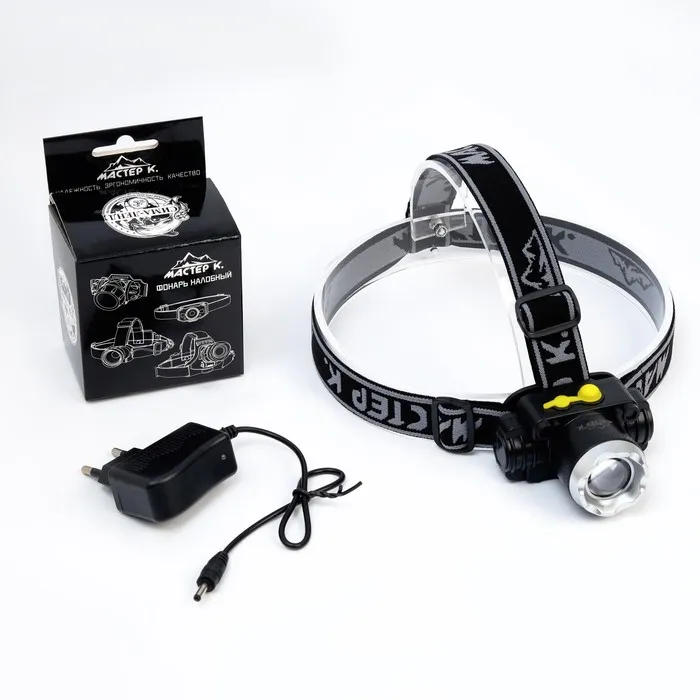 Фонарь налобный аккумуляторный "Мастер К", 1200 мАч, 2 режима, 4 х 7 см — Характеристики