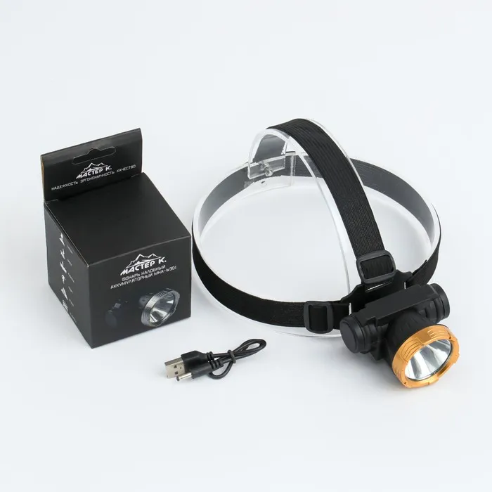 Фонарь налобный аккумуляторный "Мастер К.", 3 Вт, 800 mAh, 3.7 В, 100 лм, 1 режим, USB — Характеристики