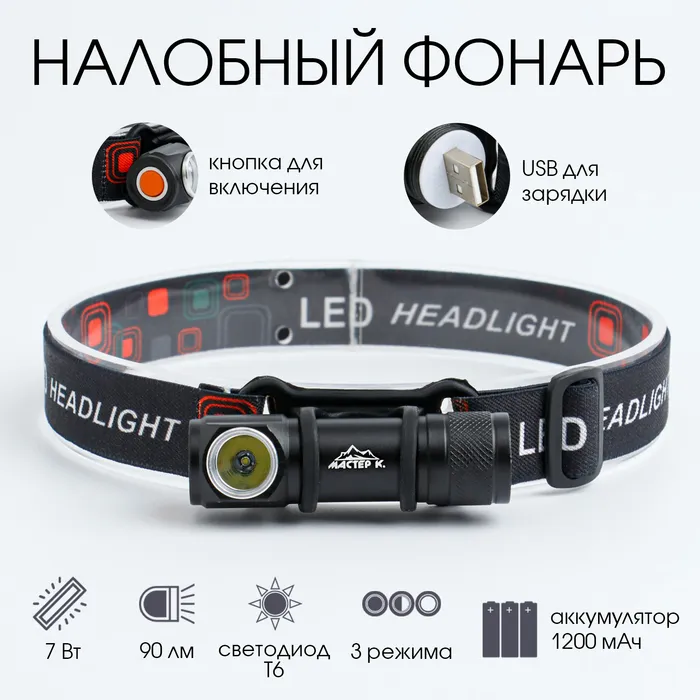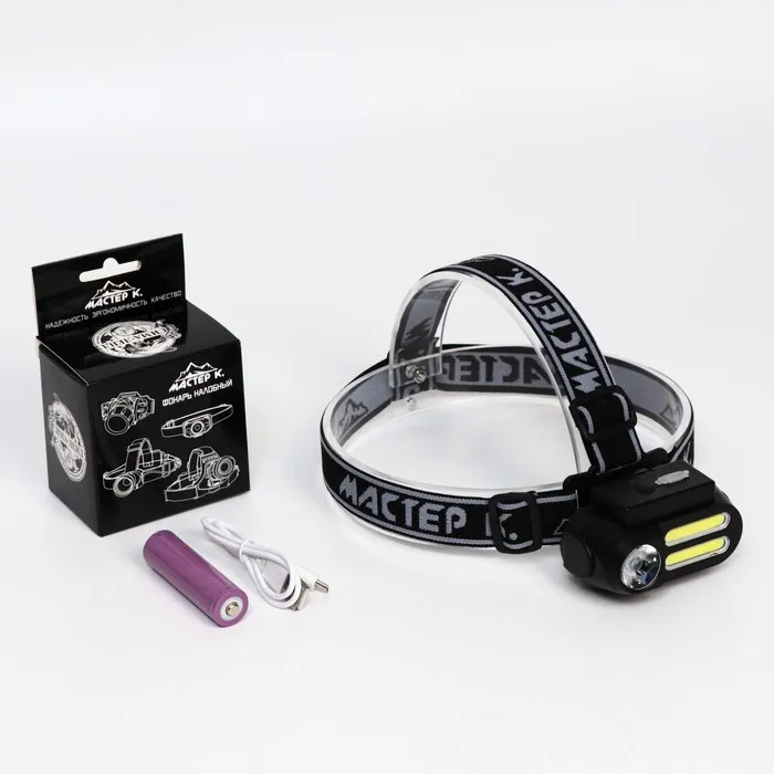 Фонарь налобный аккумуляторный "Мастер К", 4 режима, USB, 4 х 8 см — Характеристики