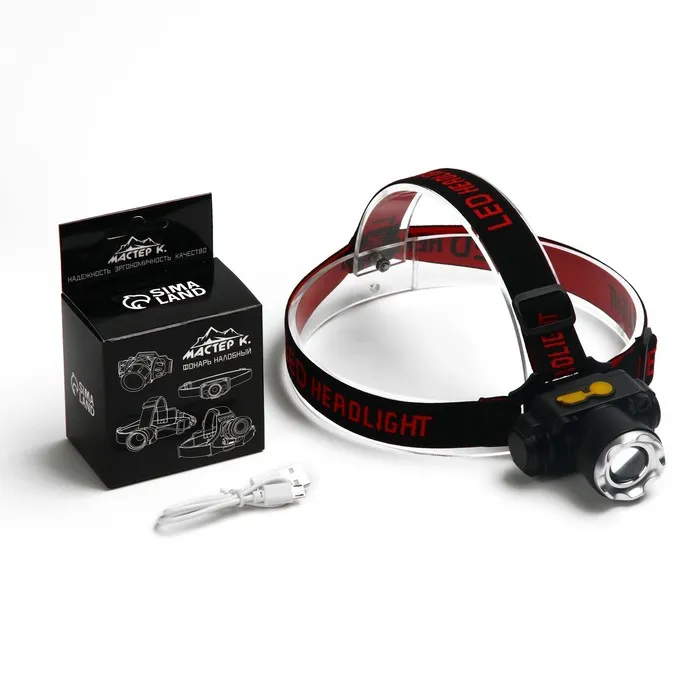 Фонарь налобный, аккумуляторный "Мастер К.", 5 х 8 см, 2 режима, USB — Характеристики