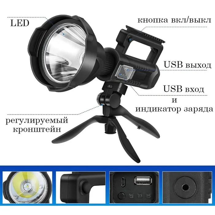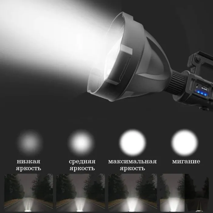 Фонарь прожекторный аккумуляторный, 40 Вт, 8000 мАч, 1200 лм, P50, USB, 4 режима, 27 х 12 см — Характеристики