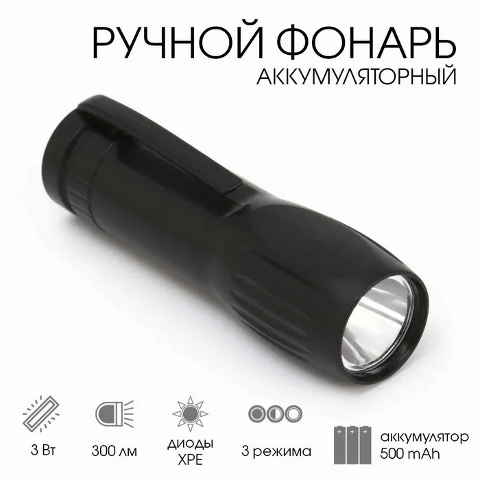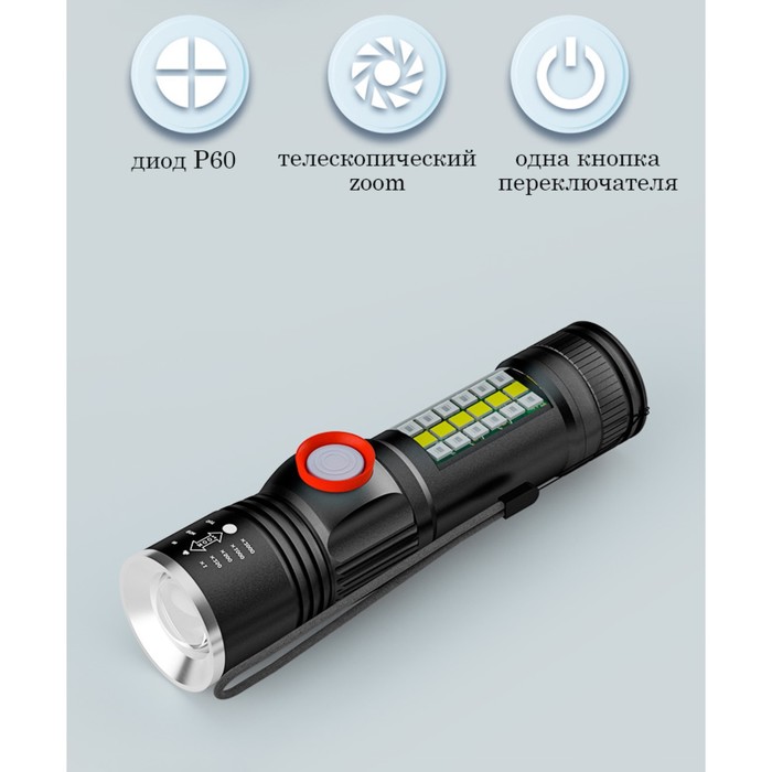 Фонарь ручной аккумуляторный, 10 Вт, 2200 мАч, P60, IPX45, zoom, 5 режимов, индикатор заряда — Характеристики