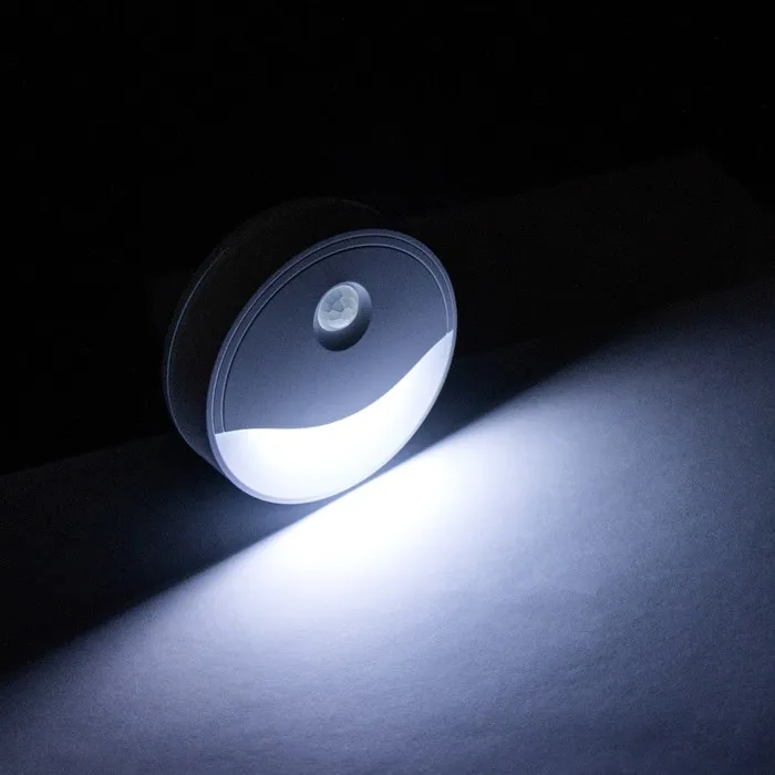 Фонарь - светильник предназначен для включения и выключения искусственного освещения в помещении. Цвет корпуса светильника: белый. Фонарь оснащен датчиком движения: при появлении движущегося объекта в зоне "видимости" датчика движения, происходит автоматическое включение фонаря. Можно крепить к поверхности с помощью клеющегося элемента на задней панели. Имеется встроенный отсек для 3-х батареек типа ААА.