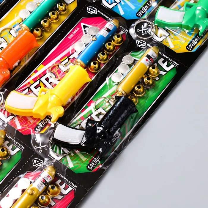 Фонарик брелок для ключей на кольце «Брелок световой», лазер 5 насадок 6.5×1×1 см, 8×4×2 см, МИКС — Характеристики