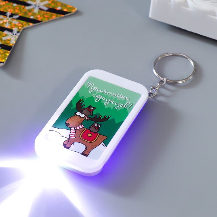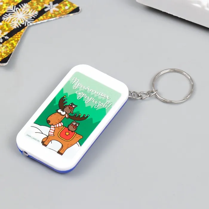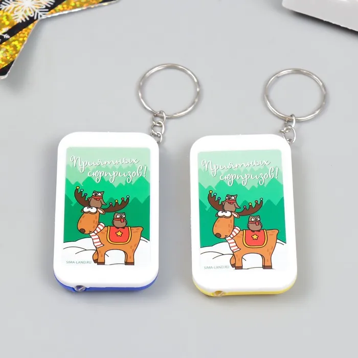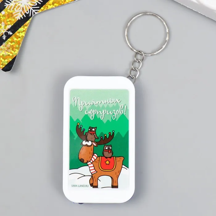 Фонарик брелок для ключей на кольце «Олешка с совами: Приятных сюрпризов», 6.5×3.5×1 см — Характеристики