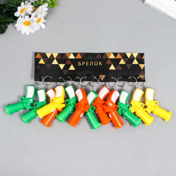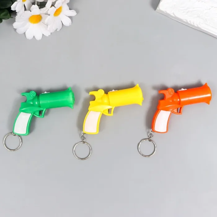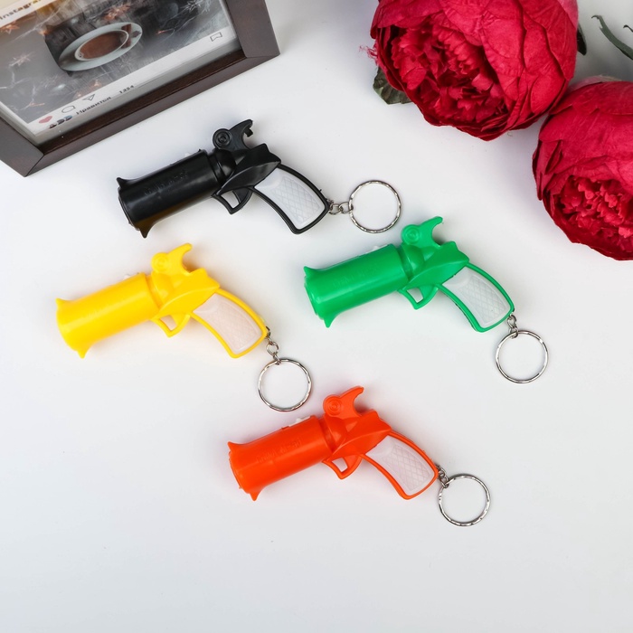 Брелок «Пистолет» размером 5,5х7,5х2 см выполнен из прочного пластика и имеет яркий дизайн (МИКС цветов). Он легко крепится к ключам и всегда готов осветить путь в темноте. Компактный и удобный, он станет незаменимым помощником в повседневной жизни, а его необычный внешний вид привлечет внимание.