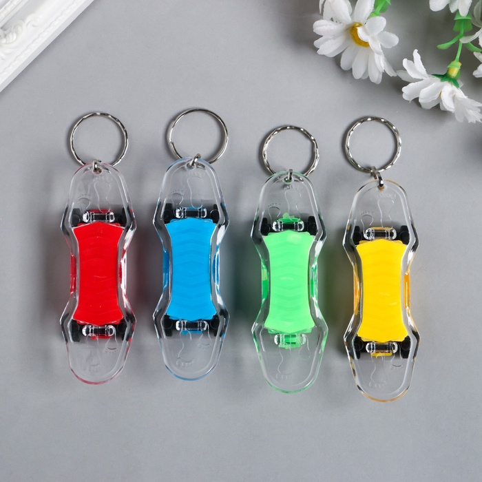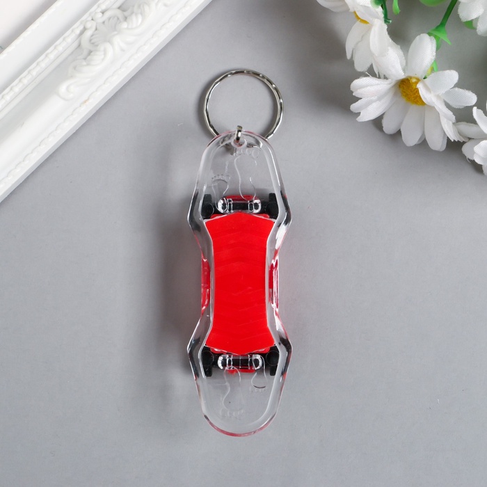 Брелок, размером всего 1,7х8,2х2,8 см, выполнен в форме скейтборда и выполнен из прочного пластика. Яркий мигающий свет (МИКС цветов) придаёт ему оригинальности, а его миниатюрный размер позволяет легко носить его на ключах. Идеальный подарок для любителей экстремальных видов спорта или просто стильных аксессуаров.