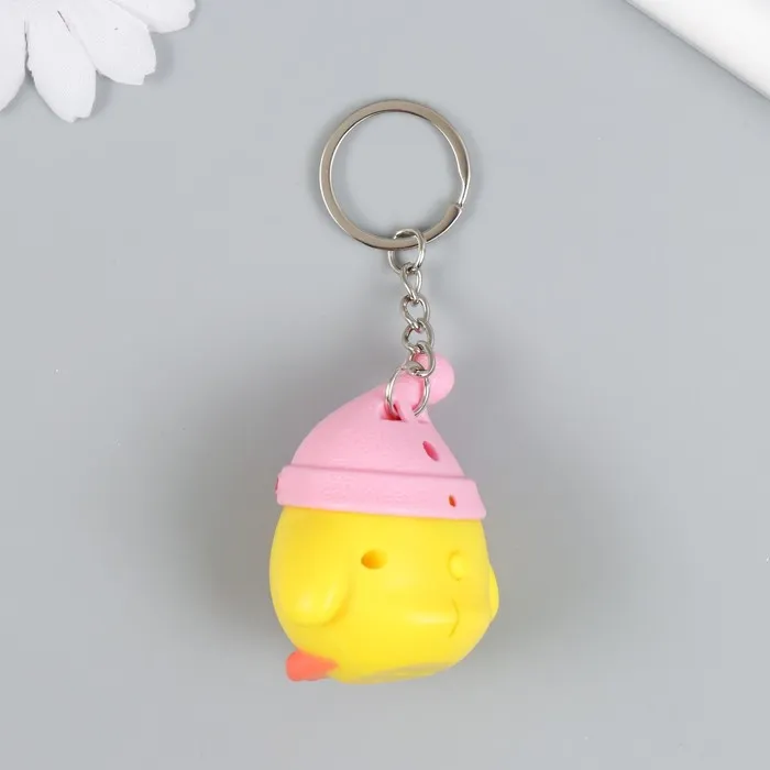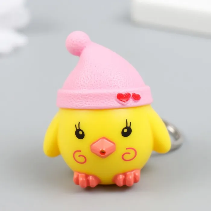 Добавьте каплю веселья и яркости в свою повседневную жизнь с оригинальным фонариком-брелоком в виде цыплёнка в шапке. Этот забавный аксессуар не только поможет вам найти ключи в сумке, но и станет настоящим украшением вашего ключевого набора. Его компактные размеры 3.3×4.5×5 см делают его удобным для ношения, а яркий дизайн привлекает внимание и поднимает настроение.