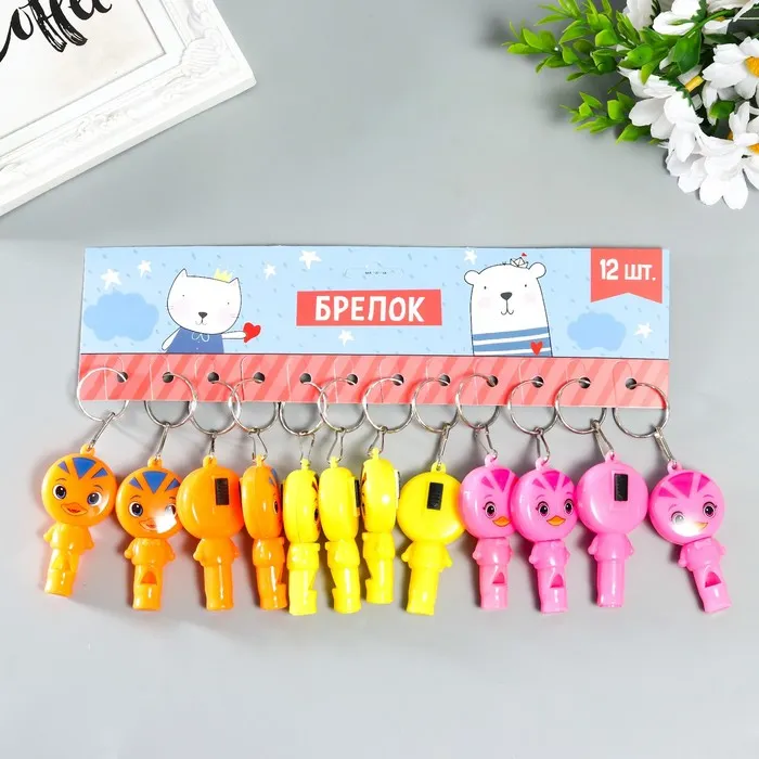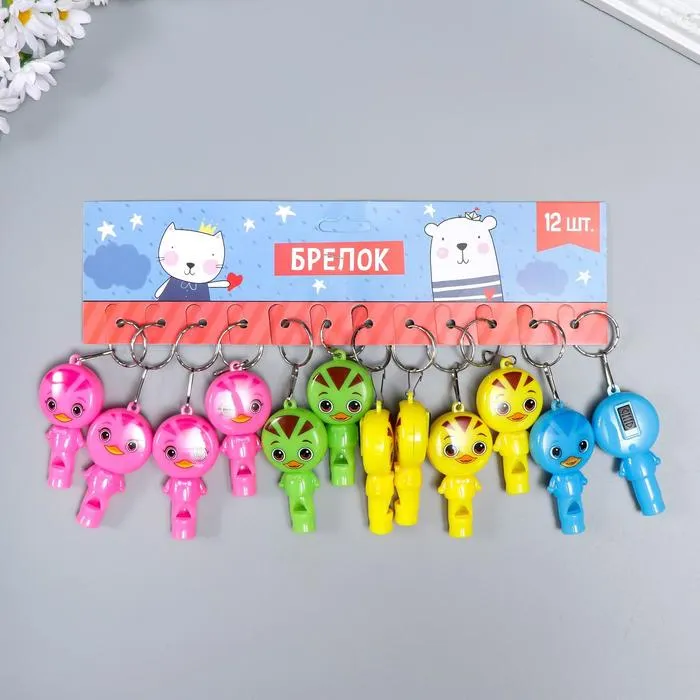 Фонарик брелок для ключей на кольце «Утёнок», свисток, мигает 6×3.2×1.3 см, МИКС — Характеристики