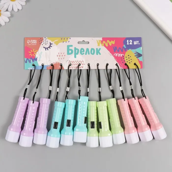 Фонарик брелок для ключей на кольце «Зефирный», LR44×3 шт., 2.5×2.7×9.5 см, МИКС — Характеристики