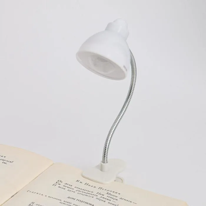 Фонарик для чтения книг на прищепке 2 LED, батарейка AG13, h-20 см, d-4 см