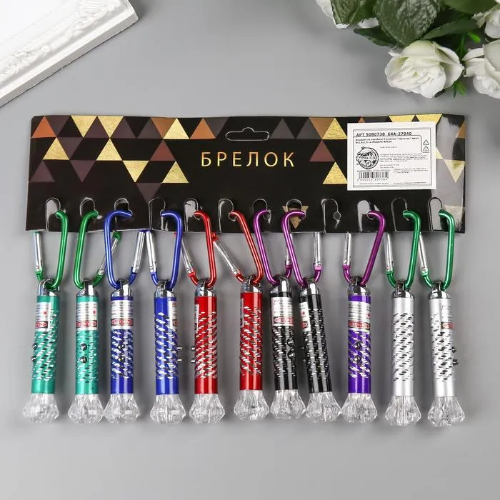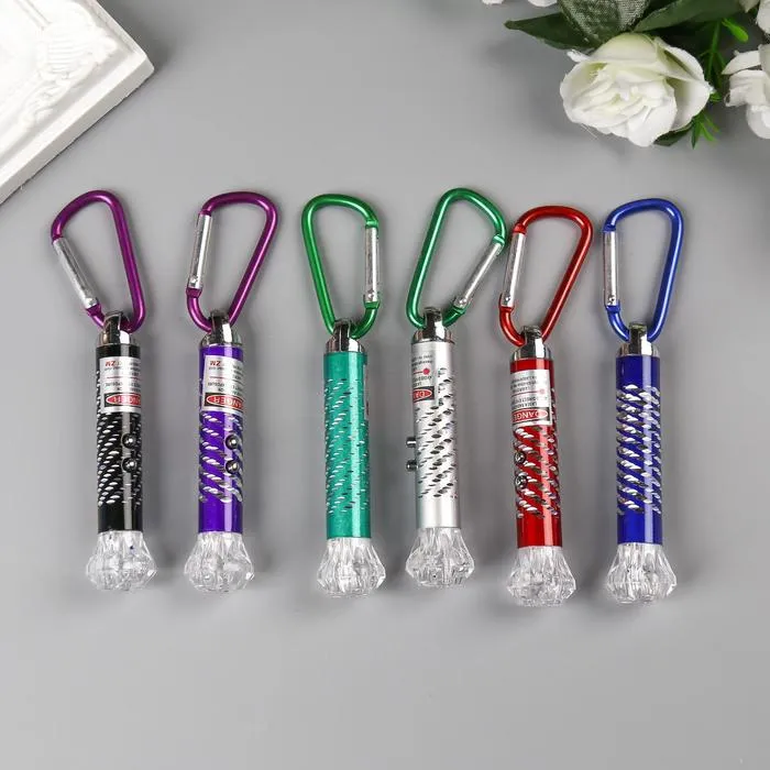 Фонарик-лазер брелок для ключей на карабине «Чёрточки», 4 режима, 8×1.9×1.9 см, МИКС — Характеристики