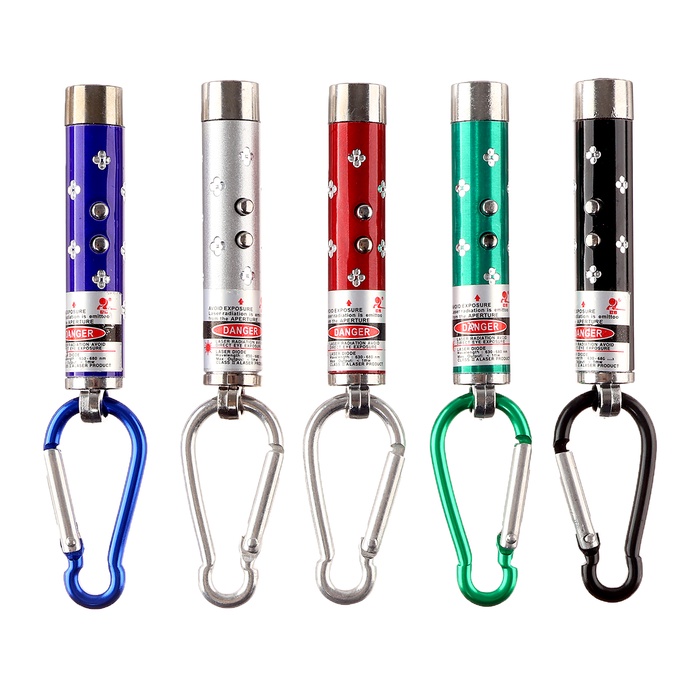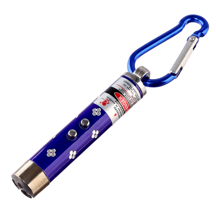 - Удобный карабин позволяет прикрепить лазер к ключам или ошейнику