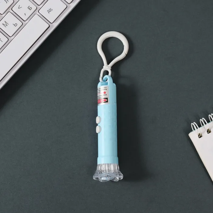 Фонарик-лазер брелок для ключей на карабине «Голубая», 3 режима, светит, мигает, указка, LR=44×3 шт., 3×3×9 см — Характеристики