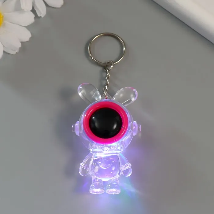 Фонарик свет на кольце"Зайчик-космонавт" розовый, мигает LR41х3 шт 2х4х7 см — Характеристики