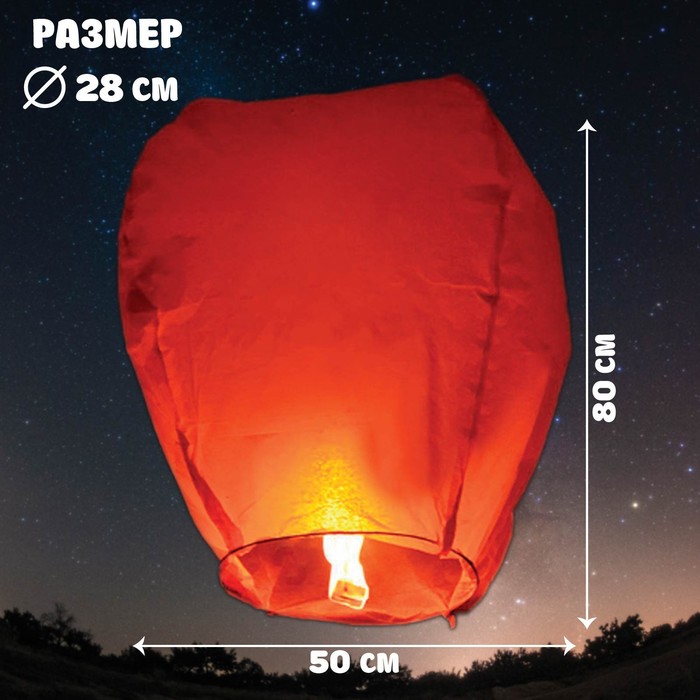Объёмная конструкция из специальной экологически чистой бумаги действует по принципу воздушного шара. Надёжно закреплённая в нижней части бумажного купола горелка разогревает воздух внутри фонарика, поднимает его вверх и эффектно подсвечивает изнутри, создавая таинственный ореол.