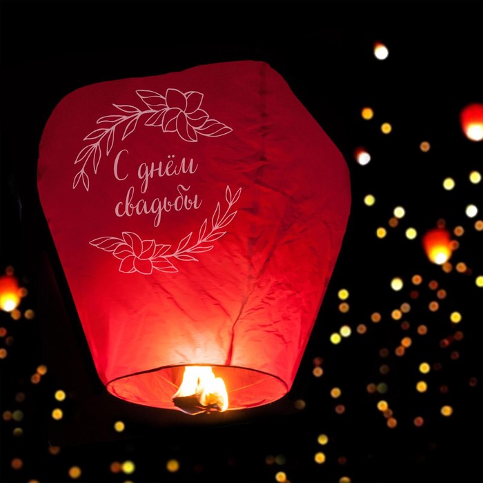 Небесный фонарик «С днём свадьбы» — это лёгкое, волшебное завершение важного момента: тихого признания, семейного праздника или с прошедшей свадебной церемонией.