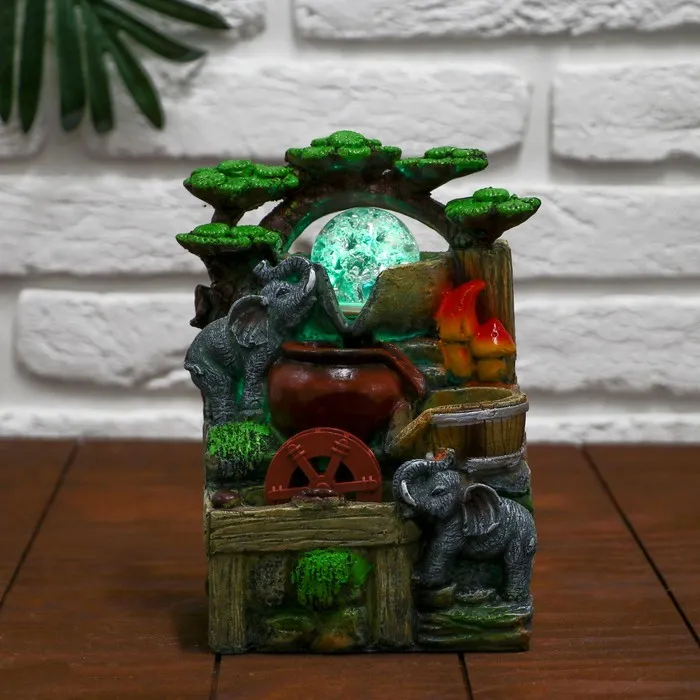 Создайте атмосферу уюта и расслабления у себя дома! Настольный фонтан с подсветкой «Два слона у ручья» – это стильный элемент декора, который привнесет в ваш интерьер нотку природной гармонии и спокойствия. Компактные размеры (11×13×20 см) делают его идеальным для размещения на любом столе или полке.