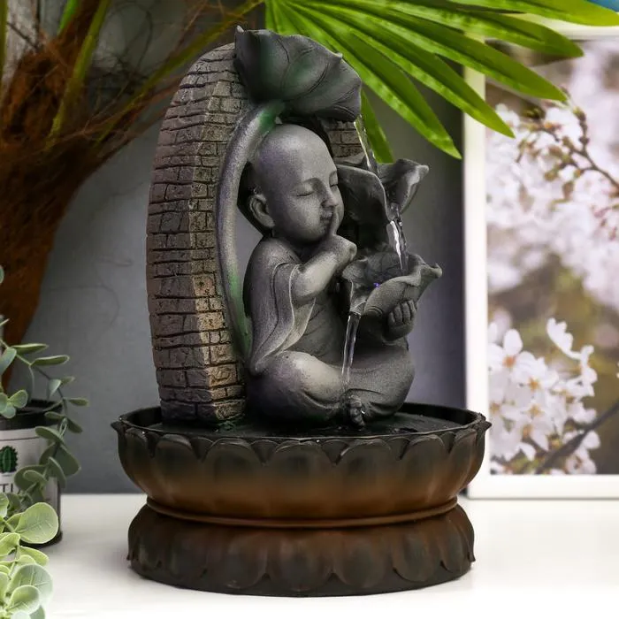 Фонтан настольный с подсветкой "Маленький Будда с чайником" 25х19,5х19,5 см