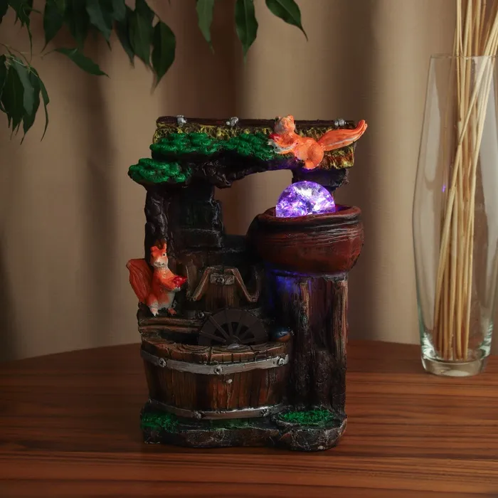 Создайте уютный уголок природы в вашем доме! Фонтан «Белки под крышей у дерева» – это стильное и компактное решение для украшения вашего интерьера. Этот декоративный элемент привносит атмосферу спокойствия и гармонии, наполняя пространство умиротворением.