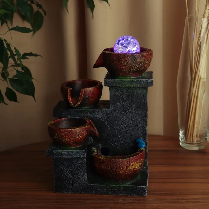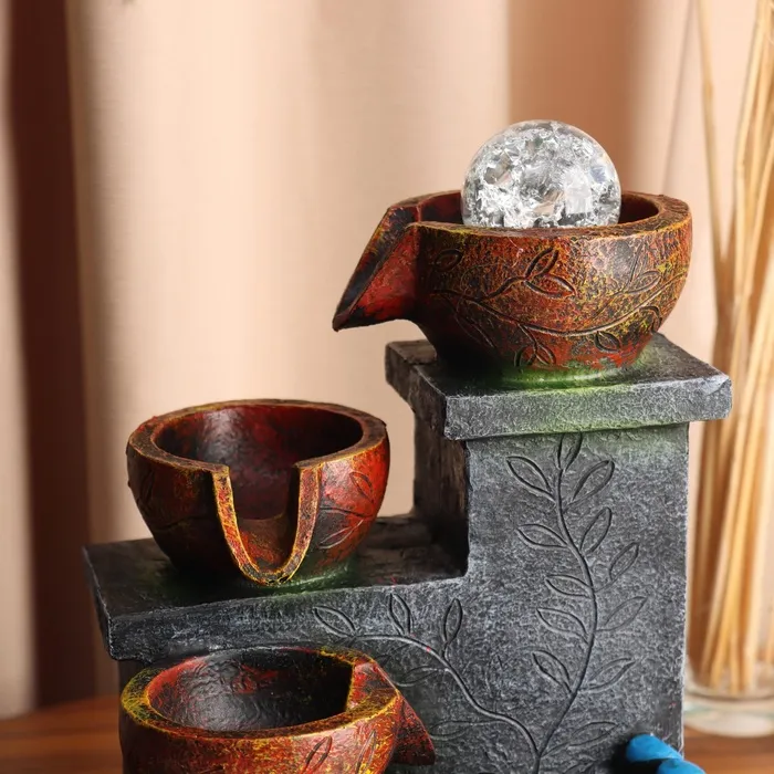 • Успокаивающее звучание воды: Фонтан наполняет пространство мягким и успокаивающим шумом, помогая снять стресс и улучшить общее самочувствие.