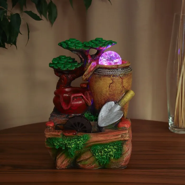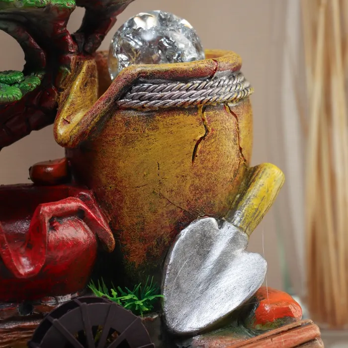 Создайте уютный уголок с природной атмосферой! Декоративный фонтан с изображением бочек и лопаты станет великолепным акцентом в вашем интерьере. Размер 27×18 см позволяет легко размещать его в доме или на даче, добавляя нотки старины и гармонии.