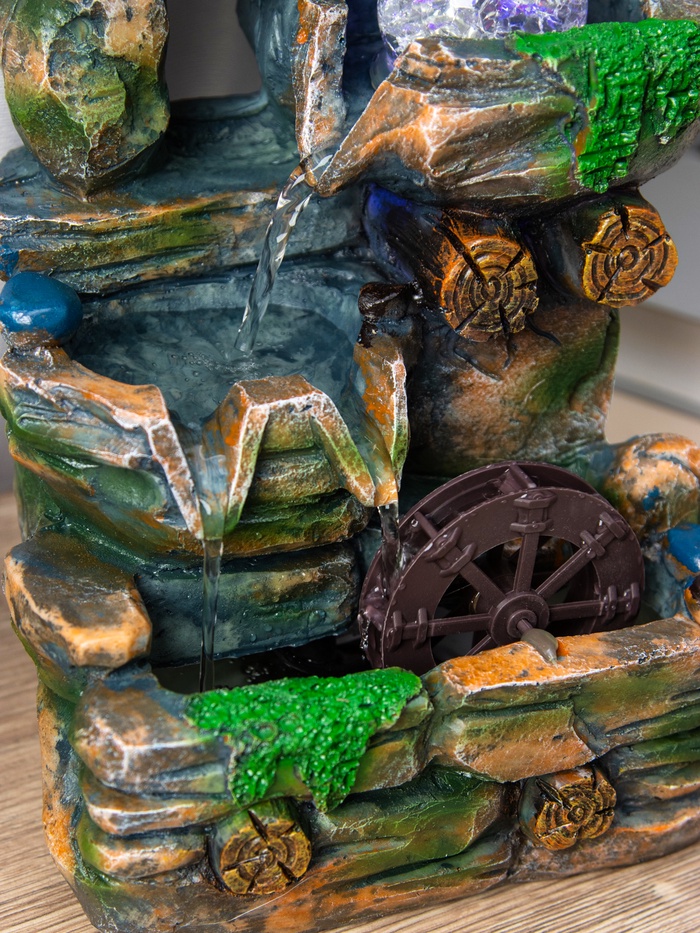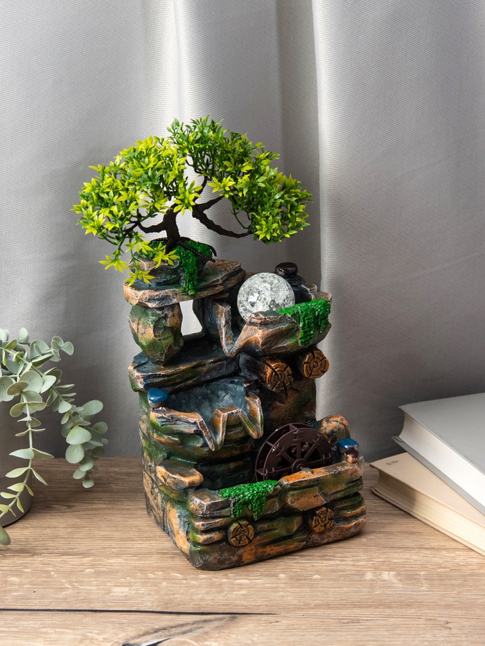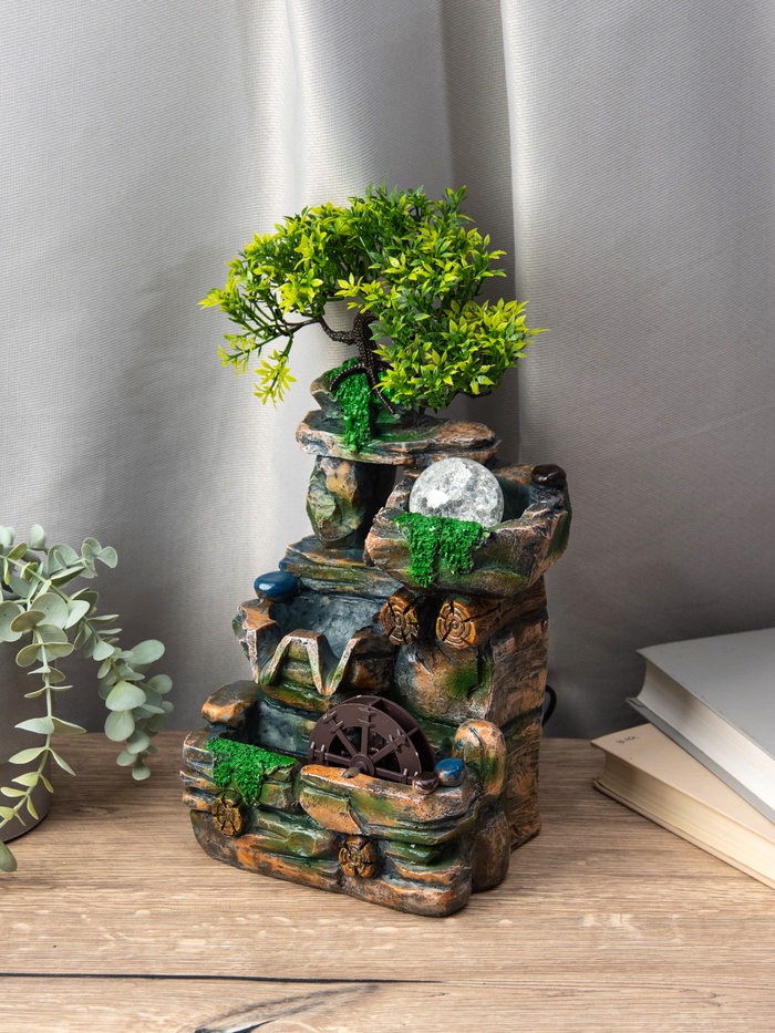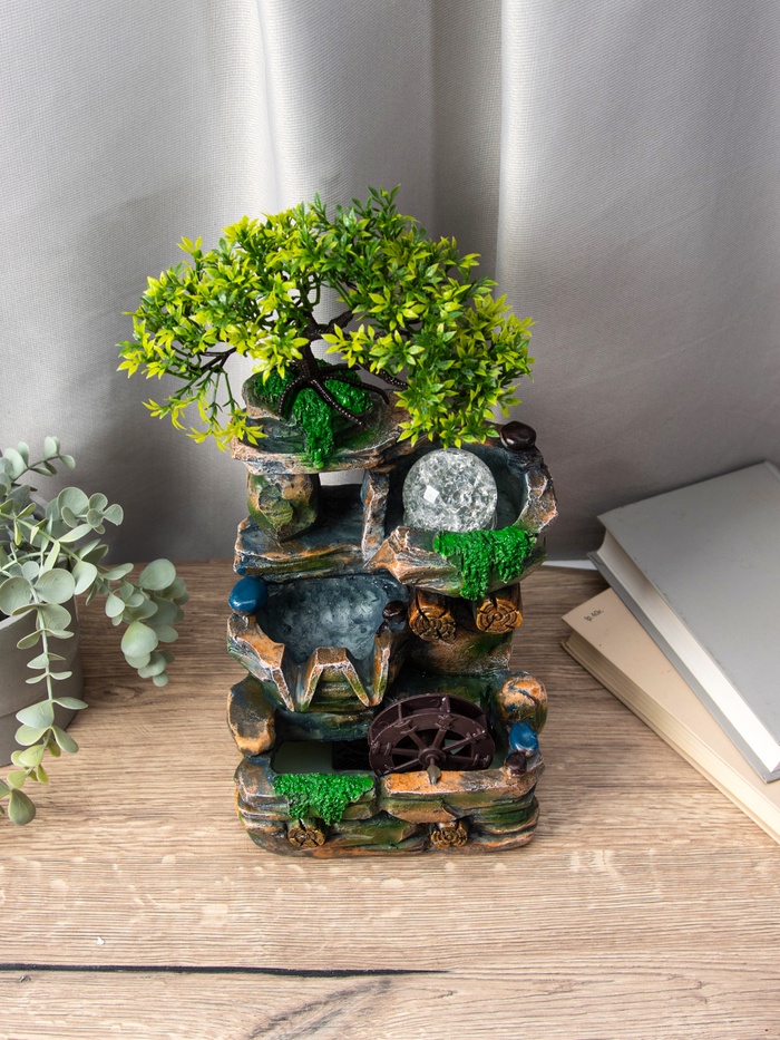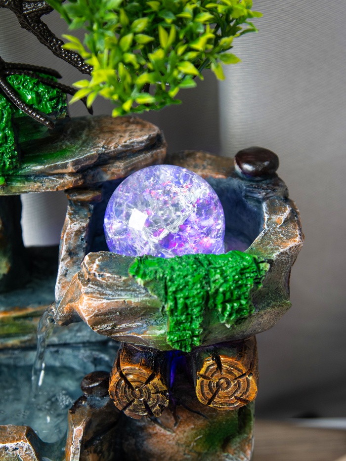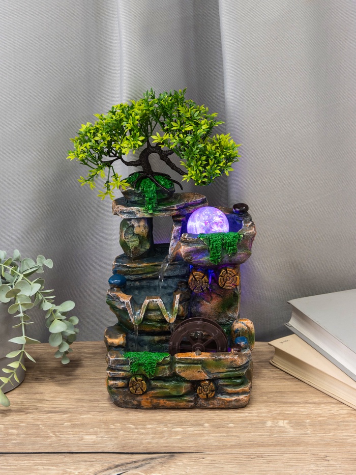 Декоративный фонтан «Деревце на скале» — идеальный выбор для создания уютной атмосферы в вашем доме. Его компактные размеры (32х15х13 см) позволяют ему стать деталью интерьера, привлекающей внимание. Магия подводной подсветки добавляет струям воды особое очарование, напоминая о спокойствии природы.