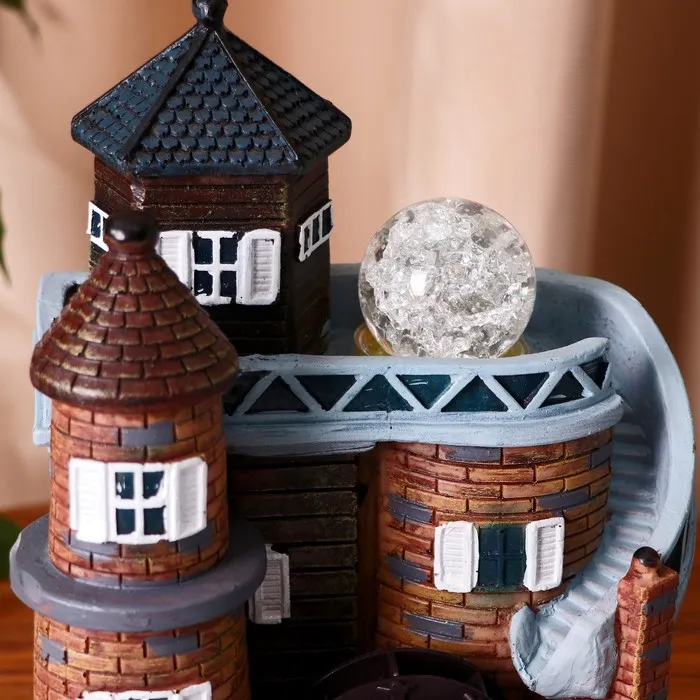 Настольный фонтан «Дом с террасой» — элегантное украшение для вашего интерьера. Вдохновленный архитектурой городов, фонтан станет центром притяжения в любом помещении. Встроенная подсветка придаёт дополнительную атмосферу уюта в вечернее время. Работает от сети, что обеспечивает его бесперебойную работу без необходимости регулярной замены батареек.