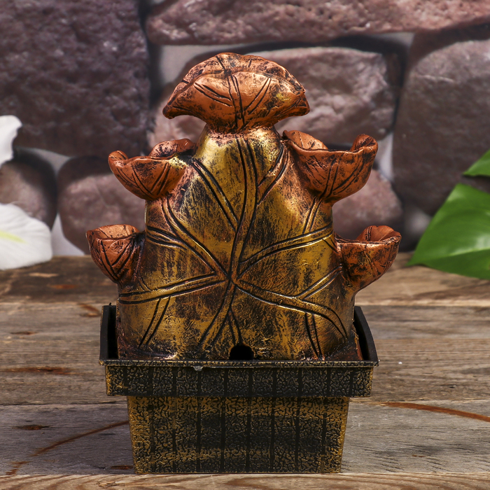 Фонтан настольный от сети, подсветка "Золотой Ганеша в гроте" 25х20х33 см