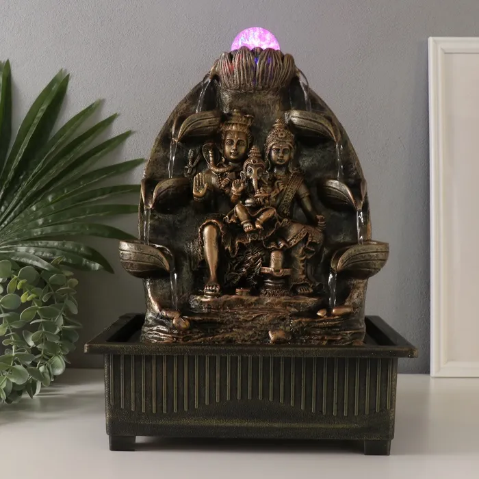Фонтан настольный от сети, подсветка "Парвати, Шива, Ганеша у водопада" 21х28х40 см
